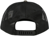 - Кепка имеет 5 люверсов — два на плотной передней панели и по одному на сетчатых;