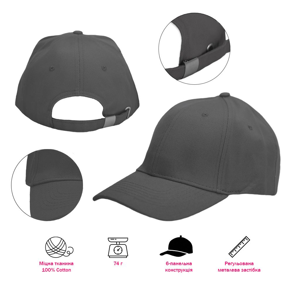 - Размер регулируется с помощью застежки, которая надежно фиксирует кепку;