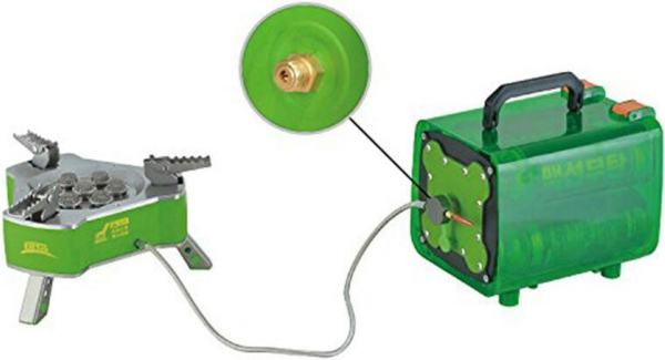 Модель предназначена для использования вместе с кассетными бутановыми газгольдерами по 220 граммов каждый и оснащена резьбовым соединением универсального размера, что делает ее совместимой с большинством газовых горелок и плит туристического типа.