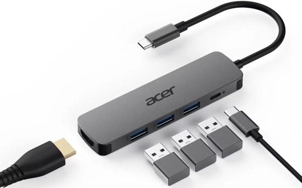 - USB хаб Acer USB-С to 3xUSB-A3.0/HDMI/USB-C, 0.15m, Gray (HP.DSCAB.021)