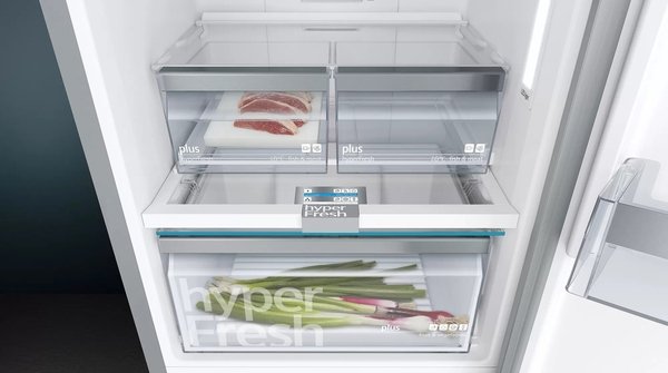 Полочки easyAccess обеспечивают удобный доступ к продуктам и их полный обзор. Для большего удобства при загрузке и вынимании продуктов стеклянные полочки можно вытянуть к середине их длины благодаря специальным шарнирам. Даже полностью загруженные полки easyAccess в холодильнике Siemens легко достаются и не наклоняются. Они изготовлены из высококачественного, прочного стекла, поэтому выдерживают большие нагрузки.