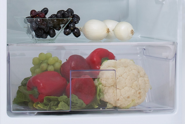 Этот ящик вмещает еще больше фруктов и овощей. Несмотря на свои размеры, ящик прост в использовании - он легко выдвигается и убирается с помощью специальных направляющих.