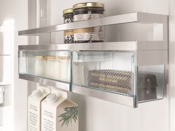Стаканы с йогуртом, стеклянные баночки с джемом или тюбики - вам нужно легко доступное для таких небольших продуктов? В вашем Liebherr он есть: VarioSafe. Оно не только создает порядок, но и легко меняется. Просто поместите двухступенчатый, регулируемый по высоте VarioSafe в холодильнике там, где он вам больше всего подходит.