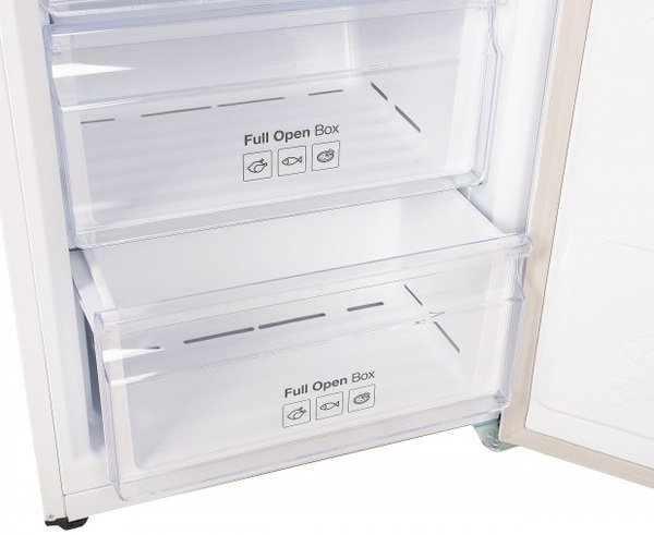Благодаря открытой конструкции ящика Full Open Box с морозильной камеры этого холодильника очень удобно доставать продукты, даже такие габаритные, как большая коробка мороженного. Ящик полностью выдвигается, даже если дверца открыта всего лишь на 90 градусов.