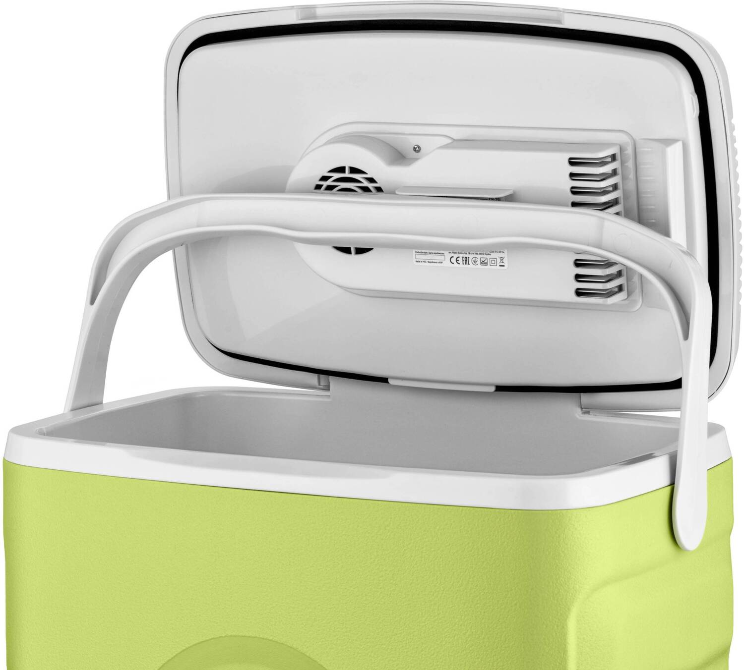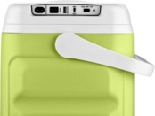 Уровень шума не превышает 26 дБ: холодильник работает почти беззвучно, не мешая отдыху во время длительных поездок. Большая эргономичная рукоятка облегчает транспортировку и фиксирует крышку в закрытом или полуоткрытом положении.