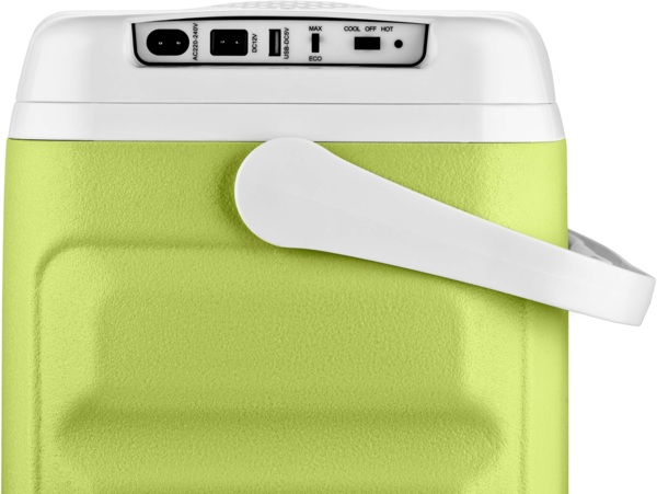 Холодильник можно подключить к прикуривателю (12 В) в автомобиле или к обычной розетке (220-240 В). Кроме того, предусмотрен разъем USB для питания от Power Bank - решение, которое добавляет автономности во время путешествий или отдыха в кемпинге. Благодаря режиму ECO устройство потребляет всего 10 Вт, обеспечивая стабильную работу при минимальных затратах энергии.