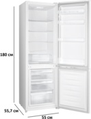 Размера вполне хватает для семьи из трех человек: в холодильном отделении много полок, большой ящик для овощей и фруктов, морозильник на три ящика снизу. Все удобно организовано, легко доставать продукты. Работает почти бесшумно, шум слышен только когда включается компрессор, но он не раздражает. Лед освещение внутри, ничего не теряется в темных углах. Дверцу можно перевесить