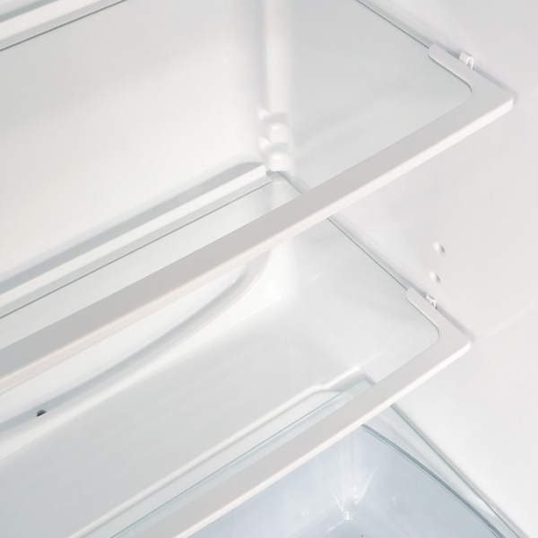 Полки из закаленного стекла выдерживают вес более 25 кг, они ударопрочные, устойчивы к царапинам и очень легко моются. Рамки спереди и сзади полки предотвращают попадание капель на полки, расположенные ниже. Полки можно легко отрегулировать по высоте или снять.