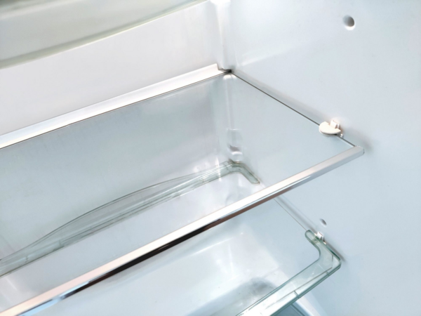 Полки из закаленного стекла выдерживают вес более 25 кг, небьющиеся, устойчивые к царапинам и очень легко моются. Рамки спереди и сзади полки предотвращают попадание пролитой жидкости на расположенные ниже полки. Полки легко регулируются по высоте или снимаются.
