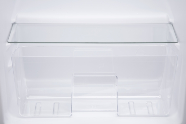 Есть отделение для овощей и фруктов, три основные полки, три боковые полки для различных баночек и напитков, а также лоток для яиц.