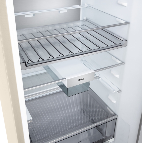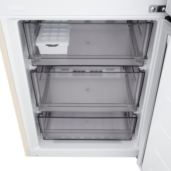 Холодильник с нижней морозильной камерой обеспечивает удобный доступ к основному отделению и рациональное распределение пространства. Общий полезный объём 375 л подходит для хранения значительного запаса продуктов.