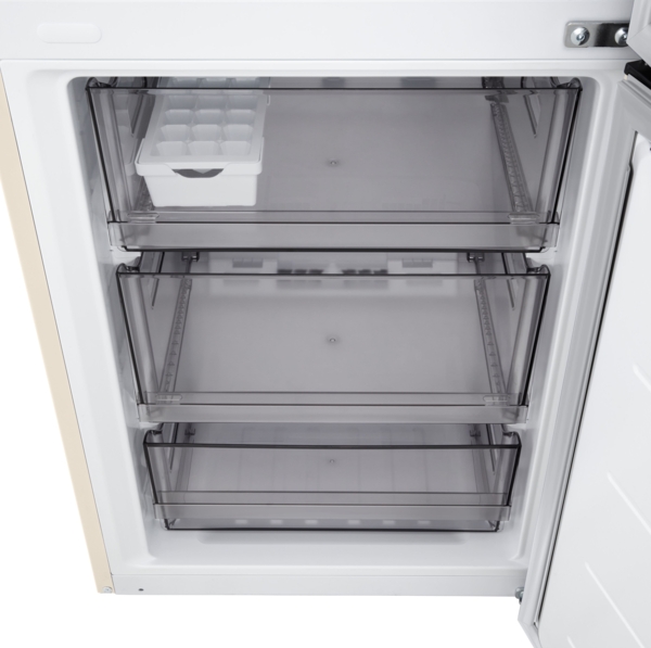 Холодильник с нижней морозильной камерой обеспечивает удобный доступ к основному отделению и рациональное распределение пространства. Общий полезный объём 375 л подходит для хранения значительного запаса продуктов.