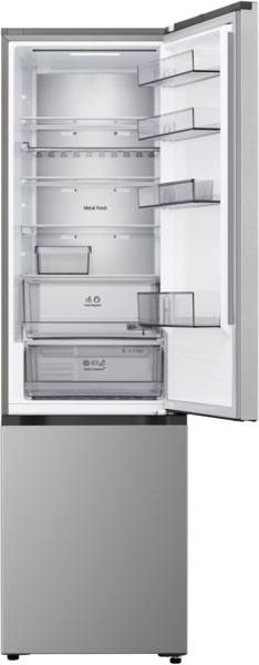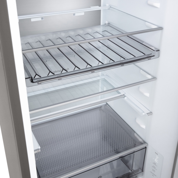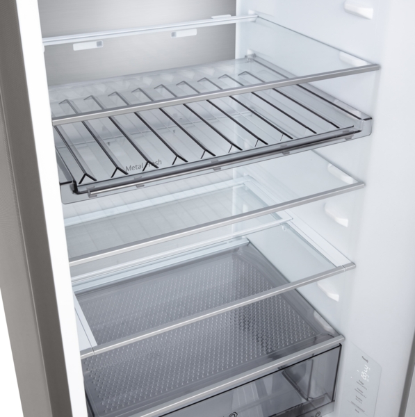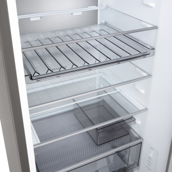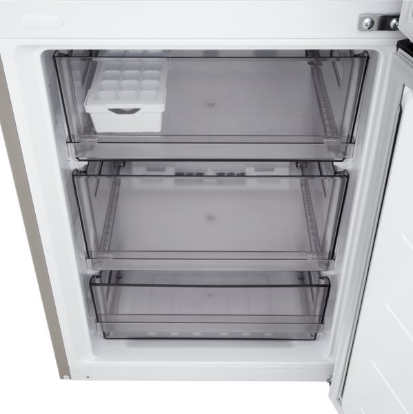 Холодильник с нижней морозильной камерой обеспечивает удобный доступ к основному отделению и рациональное распределение пространства. Общий полезный объём 375 л подходит для хранения значительного запаса продуктов.
