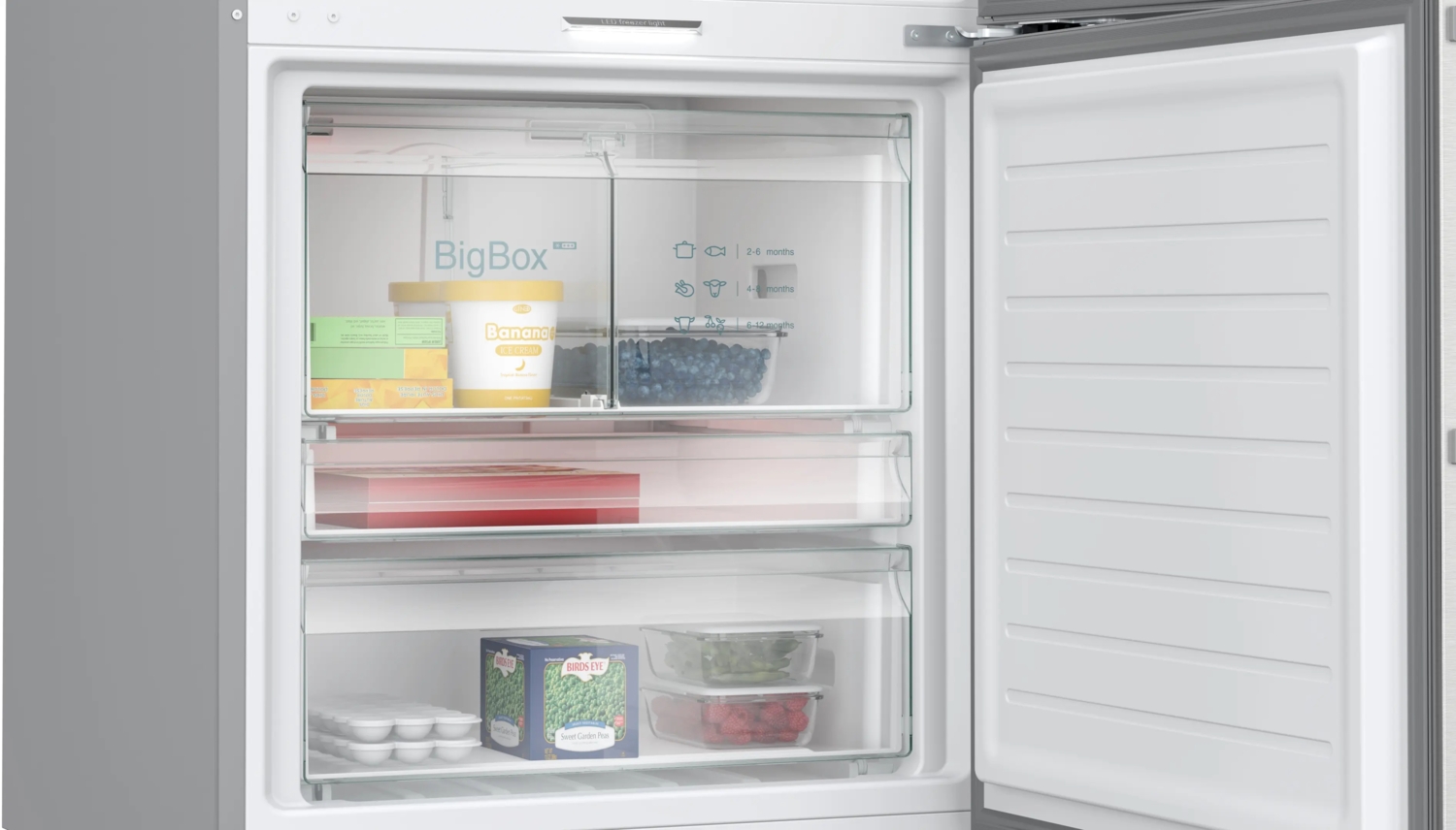 Полная видимость благодаря светодиодному освещению морозильника