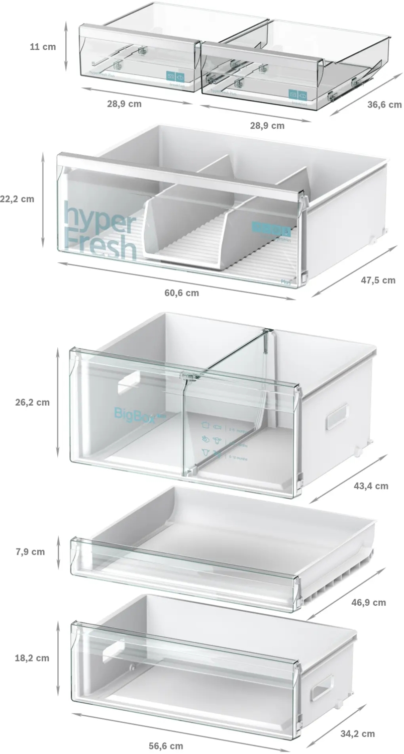 Благодаря технологии hyperFresh plus овощи и фрукты остаются свежими дольше. Регулируйте уровень влажности в отделении с помощью ползунка, чтобы обеспечить идеальные условия для продуктов. Пусть овощи и фрукты сохраняют свой вкус, витамины и питательные вещества вдвое дольше.