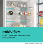 Система multiAirflow значительно улучшает циркуляцию воздуха в холодильнике. Она регулирует температуру и уровень влажности, а также предупреждает конденсацию. В результате продукты остаются свежими еще дольше.