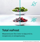 Благодаря технологии Total noFrost вам больше не нужно беспокоиться о размораживании морозильника. Система удаляет влажность и поддерживает сухой воздух, предотвращая образование инея на стенках и ваших продуктах. Это касается и зоны холодильника: влага и лед больше не появляются на задней стенке, благодаря чему продукты сохраняются свежими дольше. Это не только избавляет вас от хлопот с размораживанием, но и делает ваш прибор более энергоэффективным.