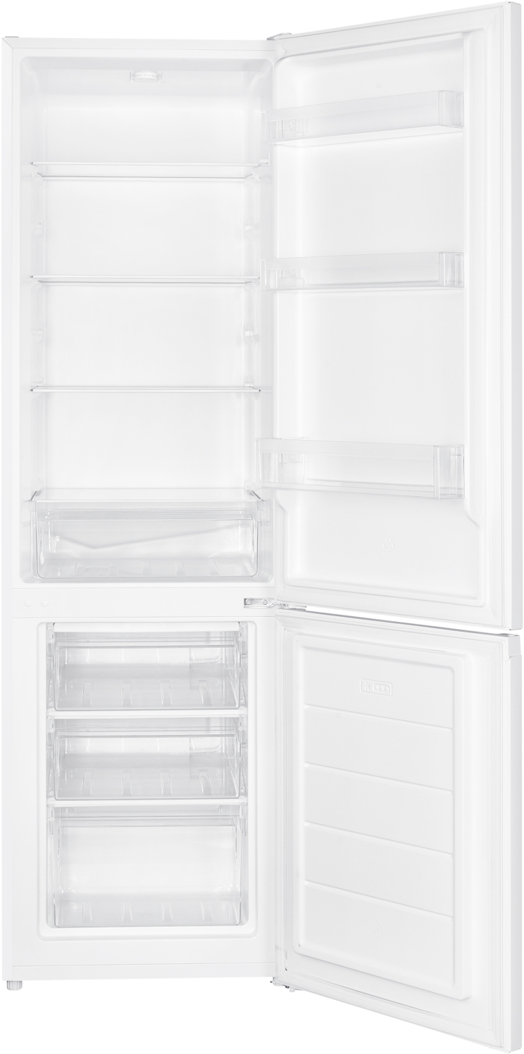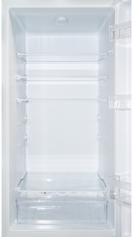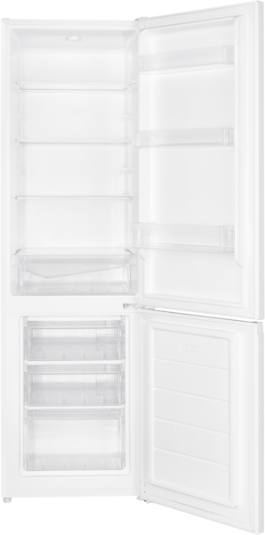 Морозильная камера расположена в нижней части холодильника и разделена на три ящика. Полки из закаленного стекла можно размещать на любой высоте. Внутреннее пространство холодильника освещается светодиодным источником света. Регулируемые ножки обеспечивают правильное выравнивание и устойчивость. Возможна смена направления открывания дверей. Ручное управление и регулировка температуры холодильника позволяет устанавливать температуру по вашему желанию. Для охлаждения используется экологически чистый хладагент R600a.