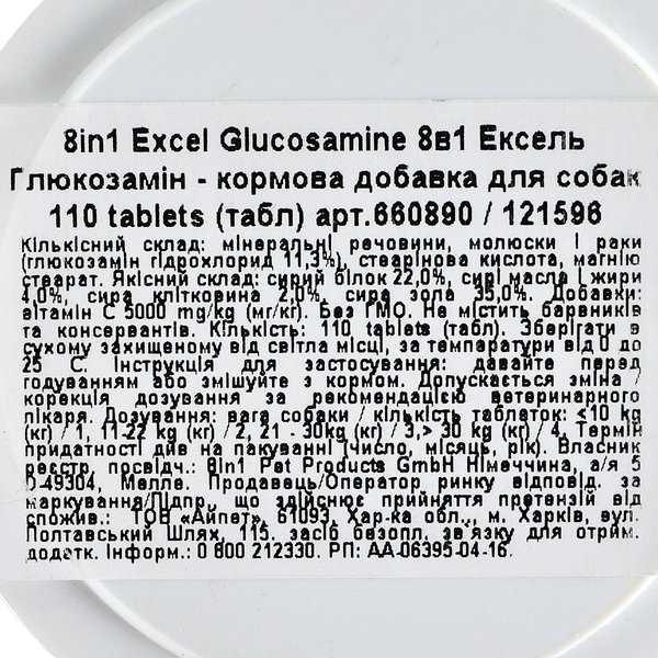 Хондропротектор для собак 8in1 Excel Glucosamine таблетки 110шт