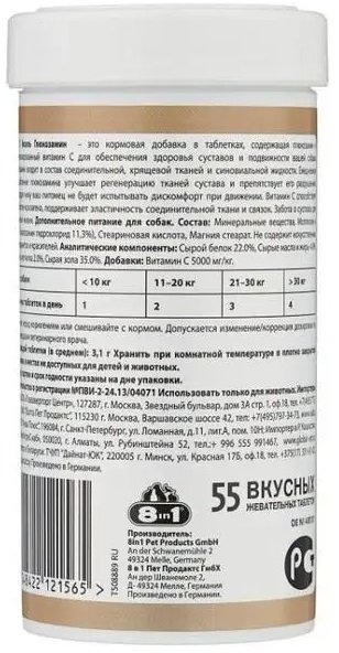 - Хондропротектор для собак 8in1 Excel Glucosamine с МСМ таблетки 55шт