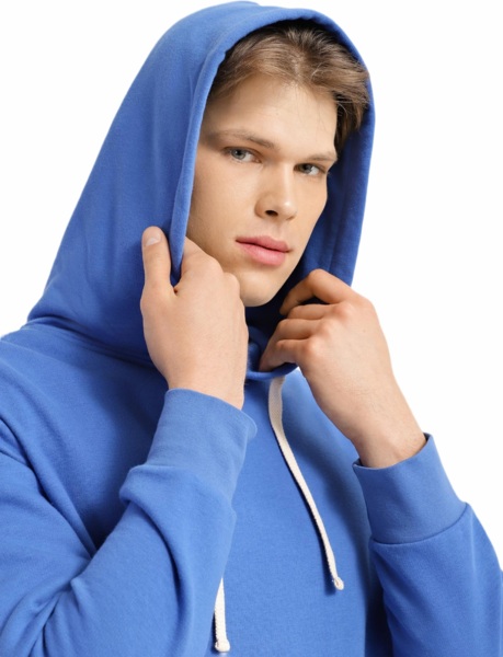 Мужской худи в цвете светлый джинс изготовлен из натурального высококачественного хлопка. Благодаря небольшому проценту полиэстера, изделие характеризуется высокой прочностью и низкой усадкой при стирке. Худи прекрасно сочетается с любыми джинсами или штанами.