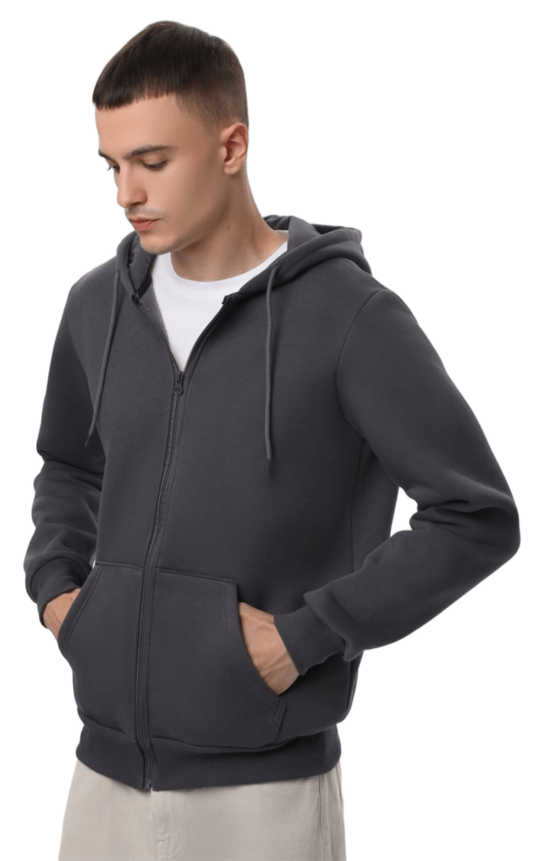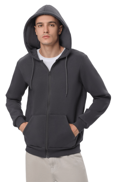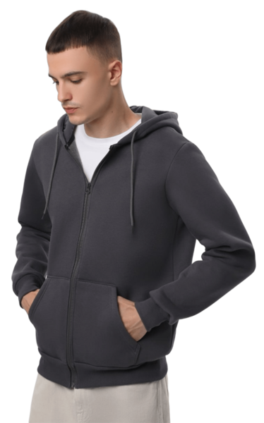 Модель изготовлена из плотного футера с мягким начесом внутри, который хорошо удерживает тепло и обеспечивает комфорт при ежедневном ношении. Худи имеет классический крой, полноразмерную молнию, капюшон со шнурком и удобный карман «кенгуру». Эластичные манжеты и низ помогают сохранять тепло и поддерживают аккуратную посадку. Подойдет для повседневного использования, прогулок и активного отдыха в осенне-зимний период.