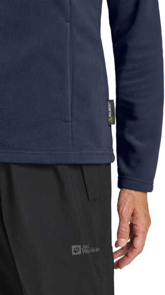 Кофта Taunus от Jack Wolfskin изготовлена из легкой переработанной ткани polartec серии 100 с гладкой поверхностью и эластичной структурой. Она прекрасно подходит в качестве первого слоя или легкого промежуточного слоя для переходных сезонов и активных занятий.
