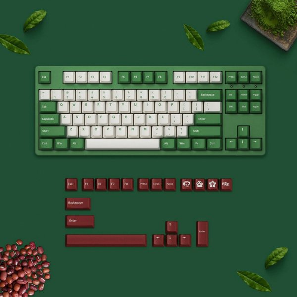 Дизайн клавиатуры Matcha Red Bean – это воплощение контрастов цветовой гаммы природы в технологиях. Сочетание матчи и красных бобов является классическим рецептом, балансирующим горечь и сладость. Контраст красного рядом с натуральными тонами зеленого создает настоящее визуальное удовольствие от декоративных красок поверх освежающих и природных оттенков. Akko стремится сделать эту клавиатуру настольным «десертом», чтобы доставлять радость и удовольствие от работы и развлечений.
