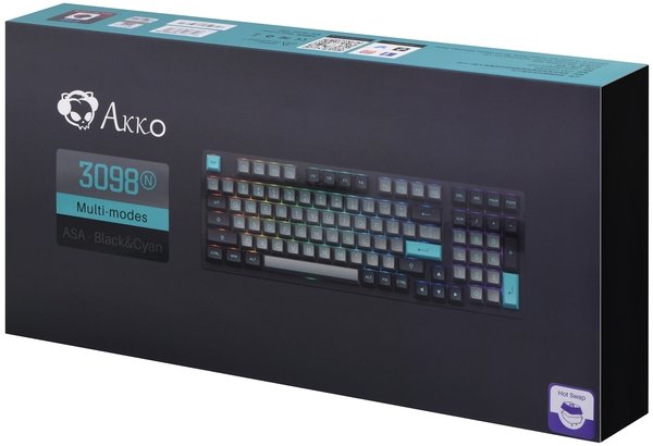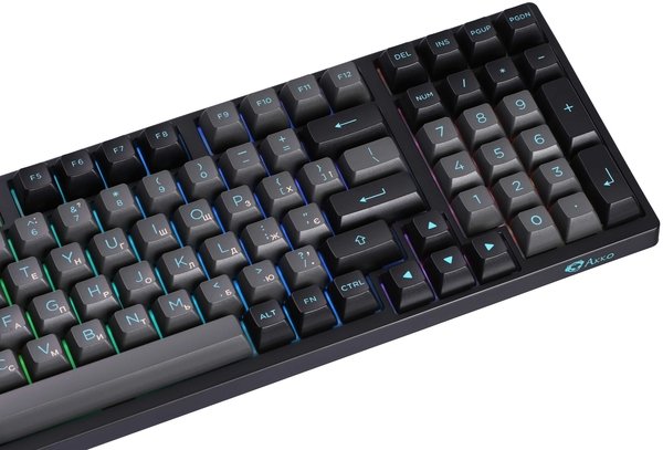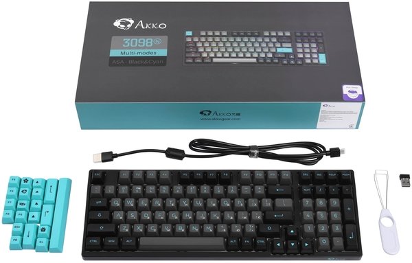 Клавиатура Akko 3098N Black&Cyan 98Key, TTC Honey, BT/WL/USB, Hot-swappable, EN/UKR, RGB, Black
