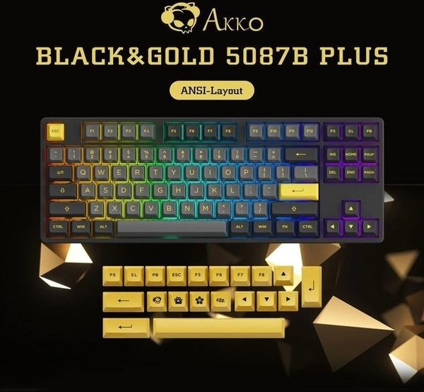 - Клавиатура Akko 5087B Plus Black & Gold 87Key, V3 Cream Yellow, BT/WL/USB-A, Hot-swappable, EN/UKR, RGB, Black