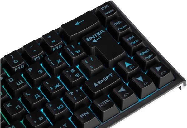 При виборі клавіатури, опиралися на бюджетний варіант. Хочу відмітити переваги саме в цій моделі це тихий звук клавіш та непогана ізоляція від пилу, саме за рахунок мінімальних зазорів, відповідно повільніше забивається пилом та порошинками. Ну і за рахунок такого щільного розташування і відсутності блоку цифр - вона є компактною. А ще вона досить – легка лише 350 гр. На разі, по користуванню, проблем не виникало, працює стабільно. Відразу товар адаптований для нас, адже є українська та англійська розкладка. Можна також налаштовувати підсвічування.