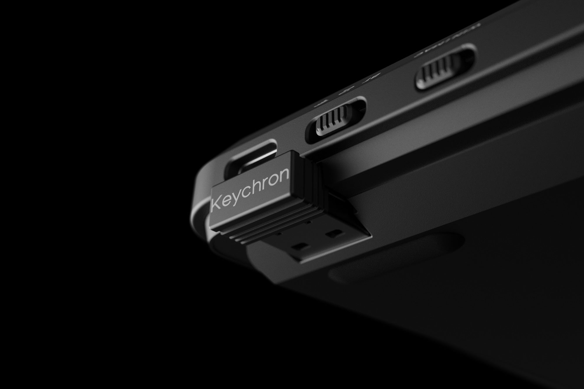 Для лучшего беспроводного соединения 2,4 ГГц J1 поставляется с приемником типа A. Наслаждайтесь быстрым подключением по принципу «plug-and-play». Или уложите его в отсек для хранения клавиатуры в правом верхнем углу.