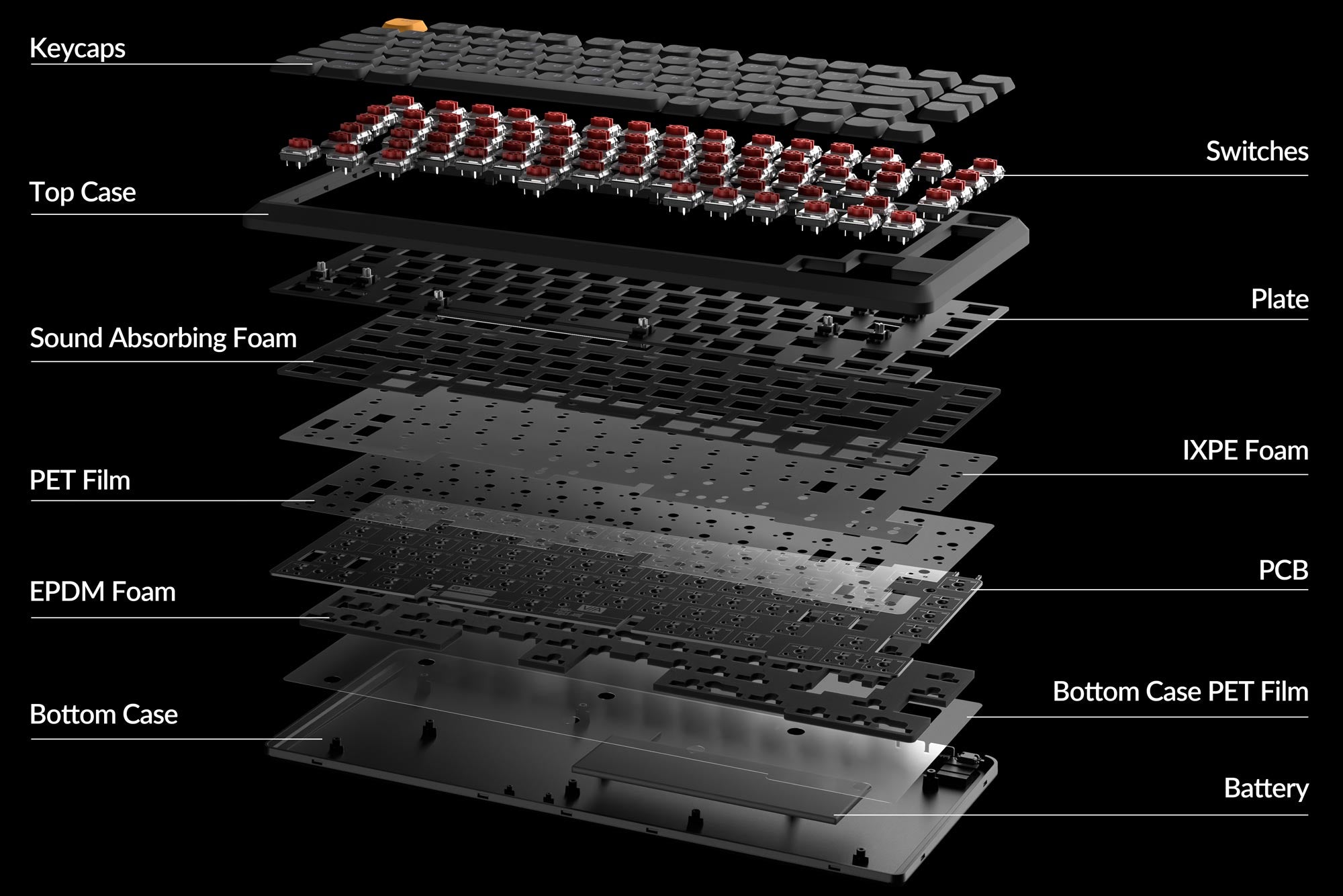 J1 — это низкопрофильная беспроводная механическая клавиатура с раскладкой 75%. Она поддерживает соединения 2,4 ГГц, Bluetooth и проводные соединения. Благодаря QMK она предлагает безграничные возможности и повышает продуктивность вашей работы и игр!
