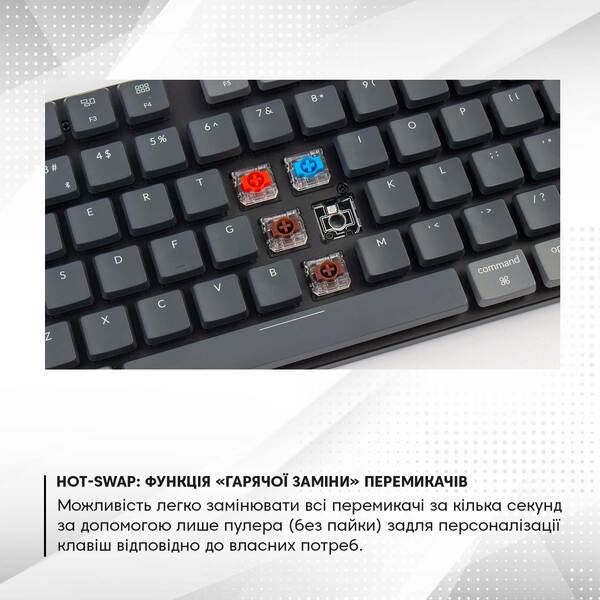 Использование первых в мире низкопрофильных оптических переключателей с возможностью горячей замены для легкой настройки набора текста с помощью каждой клавиши, а также всех фирменных функций Keychron.