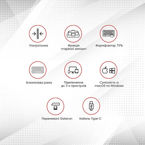 Загалом це моя перша механічна клавіатура. Брав з коричневими свічами. При огляді клавіатури у магазині зразу замітив мінуси. З цьго і почнемо. Є українські написи, але вони не світяться. Підсвітка лише у верхній частині свіча. До клавіатури в комплект дали набір кейкапів для зміни як для Mac/Linux так і для Windows. А також оранжеві для ESC та кнопки режиму підсвітки. От на них як раз підсвітка виглядає не дуже, адже просвічується. Але за це я зірку знімати не буду, бо це вже мої "доколупування" Тепер плюси: 1) компактна клавіатура з низьким профілем (в тому числі свічі та кейкапи). За рахунок цього вона зручна у використанні 2) виглядає дорого і професійно - нічого лишнього 3) підсвітка робить цю клавіатуру ще крутішою 4) можливість налаштувати саму підсвітку через програму 5) легенька: можна брати з собою в поїздки, бо вона ще й з блютузом 6) приємне нажаття на клавіші - нічого не скрипить, не пищить 7) легко чиститься