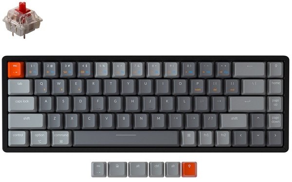K6 имеет колпачки клавиш для операционных систем Windows и Mac. Версия с возможностью горячей замены поставляется с предустановленным переключателем Gateron.
