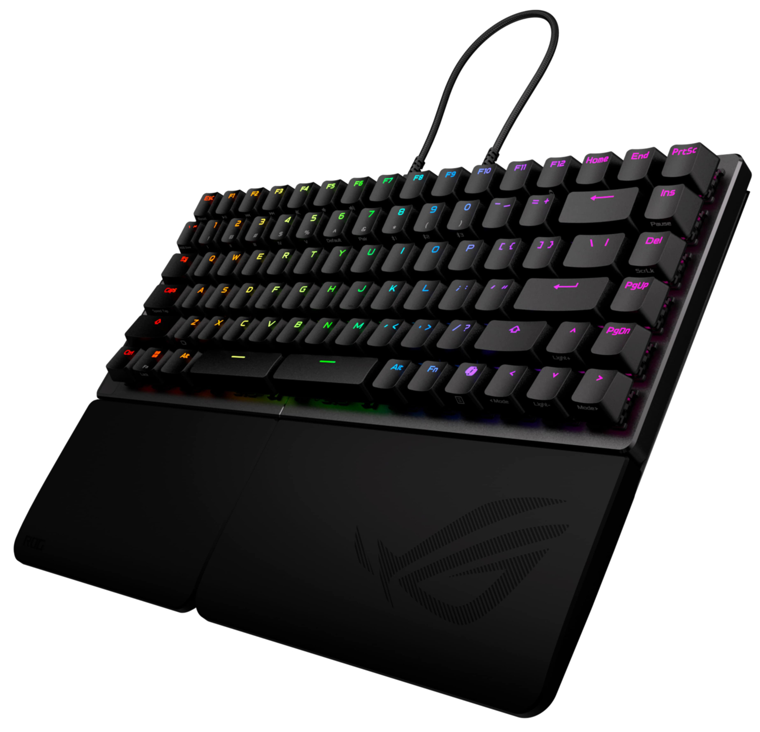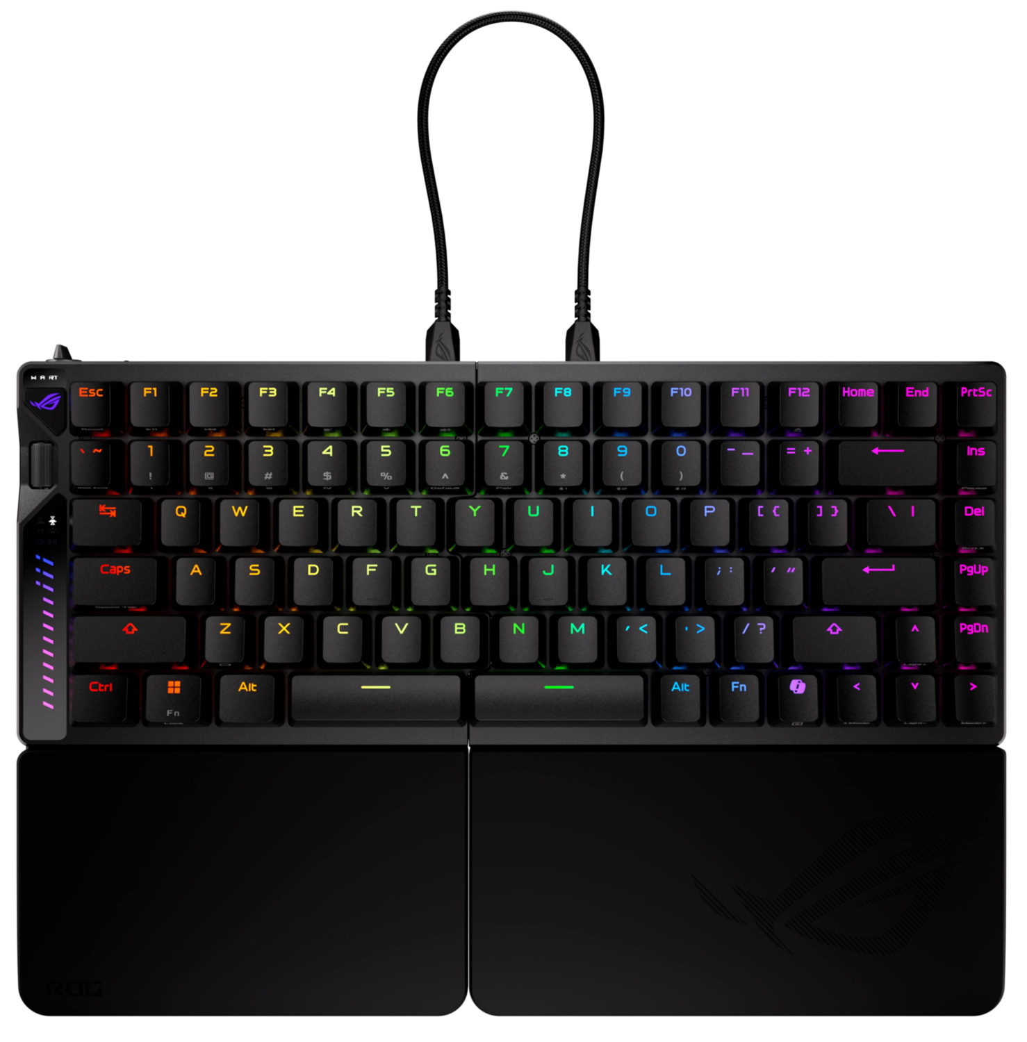 Формат "75%" в ROG Falcata сохраняет все необходимые клавиши - стрелки, функциональные и навигационные - при этом клавиатура остается компактной. Ее уникальная конструкция позволяет отсоединить правую часть клавиатуры, оставляя левую для максимального комфорта во время игры. По сравнению с клавиатурой "65%", такой разделенный формат дает еще больше пространства для активных движений мышкой.