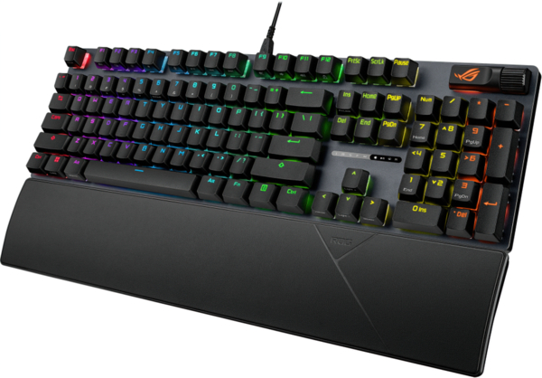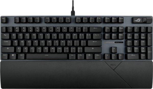 Игровая клавиатура ROG Strix Scope II X – это настоящая станция управления боем, оснащенная специально настроенными механическими переключателями ROG NX V2, двухкомпонентными колпачками из PBT-пластика или ABS-пластика с УФ-покрытием, гарантирующими превосходные тактильные ощущения и устойчивость к истиранию, удобными многофункциональными регуляторами, горячими клавишами для управления трансляциями, а также съемной подставкой для рук.