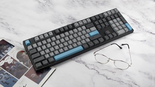 Клавиши изготовлены из высокопрочного пластика PBT с применением dye-sublimation технологии, с выгравированными символами на боках. Использование dye-sub позволяет символам никогда не стираться и никак не чувствоваться при печати, а качественный PBT пластик гарантирует надежность и долговечность. Клавиши гладкие и приятны на ощупь. Из-за особенности производства символы на клавишах могут быть расположены с небольшим сдвигом.