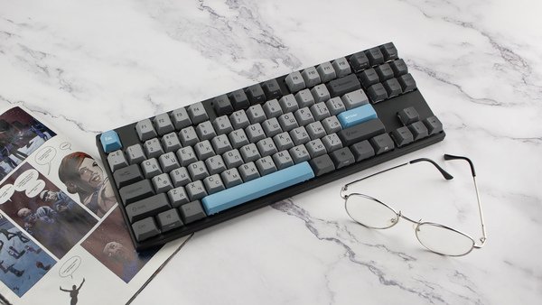 Компактная клавиатура Varmilo MA87M V2 Moonlight имеет оригинальный дизайн. Колпачки изготовлены из высокопрочного пластика PBT с применением dye-sublimation технологии с выгравированными символами на боках, использование dye-sub позволяет символам никогда не стереться и никак не чувствоваться при печати, а качественный PBT пластик гарантирует надежность и долговечность, клавиши имеют слегка текстурированный верх и приятны на ощупь.