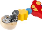 Сразу заметила эту яркую клипсу heimess. Она сделана из хорошей древесины и покрыта лаком, благодаря этому дерево не гниет от воды. Также они хорошо обработаны нет заусенец и острых сторон. Детальки хорошо покрашены, краска не шелушиться и не имеет запаха. Ребёнку совсем не тяжело с ней, она очень мало весит. Хорошо цепляется, плотно застегивается и не спадает. Верёвка на которой все игрушки очень плотная и трудно гнется.