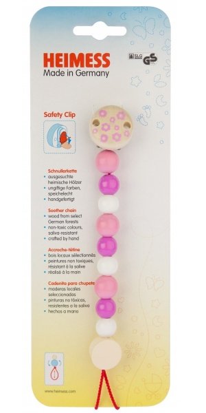 Купила своей девочке, можно сказать первое в её жизни украшение в виде клипсы для пустышки "Heimess с розовыми бусинками". Производителя Heimess выбрала по рекомендации подруги. Выбор и заказ клипсы сделала на этом сайте (MOYO). Конкретно в этой клипсе меня привлекла «девчачья» розовая расцветка и то, что она изготовлена из натуральных материалов. Клипса свою функцию выполняет хорошо, прочно крепиться на одежду, коляску, кроватку. Может выполнять и роль игрушки, привлекая внимание ярким цветом бусинок. Также эта клипса не плохо развивает мелкую моторику пальчиков, если её перебирать. Теперь соска надёжно застрахована от потери. Рекомендую.