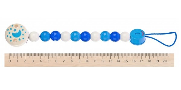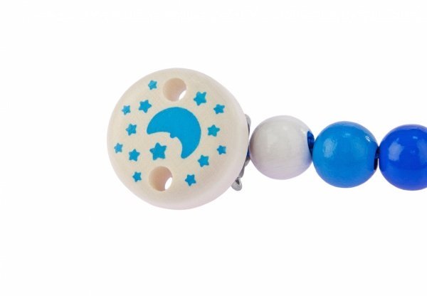 Клипса для пустышки "Синие бусинки" от немецкого производителя Heimess изготовлена из ярких деревянных элементов с петлей и клипсой на концах для младенцев. Поэтому пустышка никогда не потеряется. Размер петли регулируется. Клипса практическая и экологическая, ведь обработанная краской на водной основе. Клипса способствует развитию моторики, восприятия цветов и зрения, координацию движений.