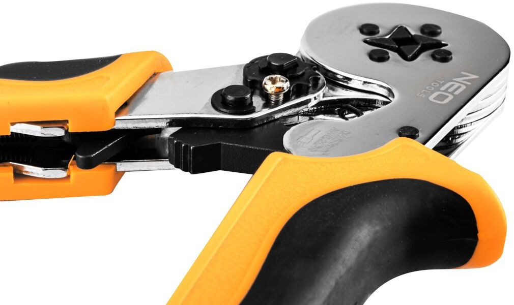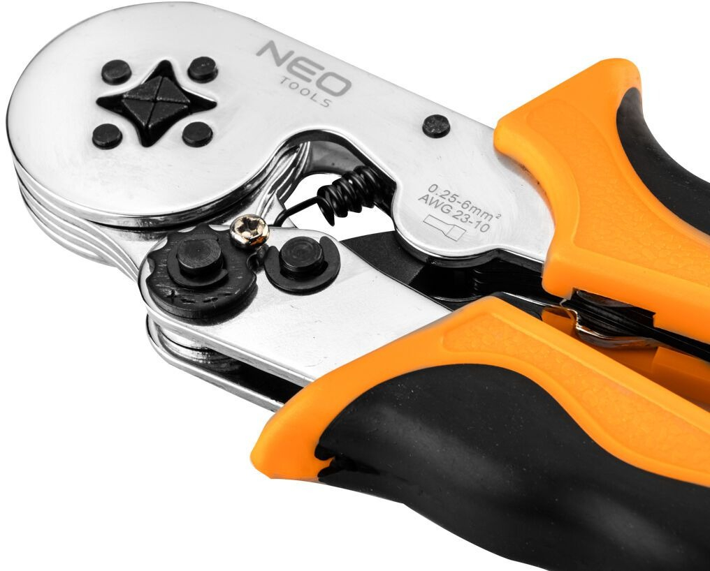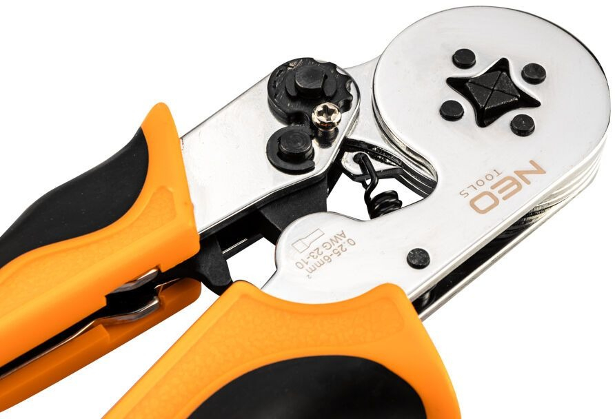 Инструмент для обжима втулочных наконечников Neo Tools - специализированный инструмент длиной 170 мм, с широким диапазоном обжима и предназначен для клемм диаметром от 0,25 до 6 мм.