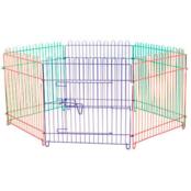 Очень удобный вариант манежа для щенков. Клетка-манеж для щенков чаще всего используется на выставках животных. Кроме этого она идеально подходит для отдыха на природе и ограничения передвижения по квартире. Клетка представляет собой решетку, изготовленную из тонких металлических прутьев, диаметр которых 2 мм, расстояние между ними - 3 см. Прочный материал позволяет фиксировать внутреннее пространство манежа. Общий размер одной секции: 62х62 см, в комплекте 6 штук. В комплекте одна секция имеет фиксирующую дверцу. В сложенном состоянии внутренний размер 124 см.