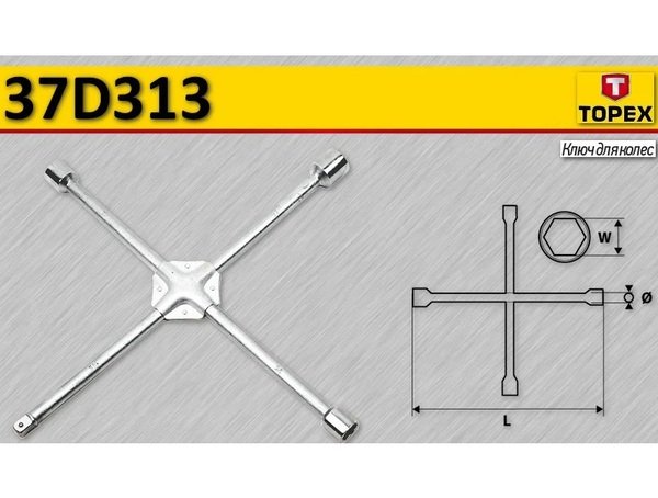 - Ключ балонный крестовой TOPEX 37D313 17 x 19 x 22 мм, 1/2"