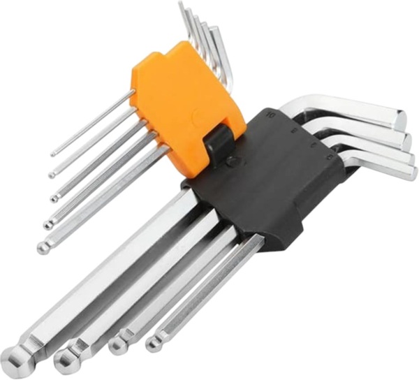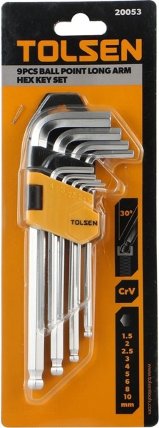 Ключи шестигранные Tolsen, набор 9шт, шаровидный наконечник, CrV, 1.5-10мм (20053)