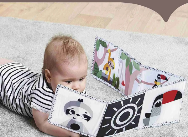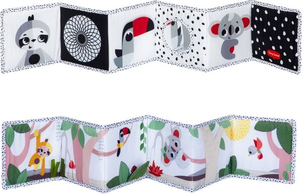 Контрастный черно-белый дизайн на одной стороне способствует визуальному развитию младших малышей, тогда как успокаивающие цветные сюжеты и милые персонажи на другой стороне очаровывают детей старшего возраста. Когда младенцы тянут и дергают за мягкие ленты, их маленькие пальчики становятся сильнее и ловче.