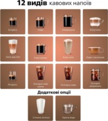 Наслаждайтесь 12 видами горячих и холодных напитков, доступных для приготовления с экрана управления кофемашиной.