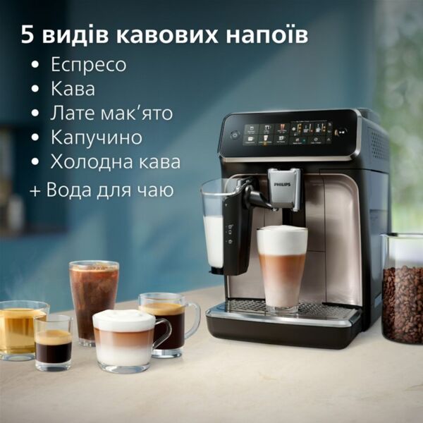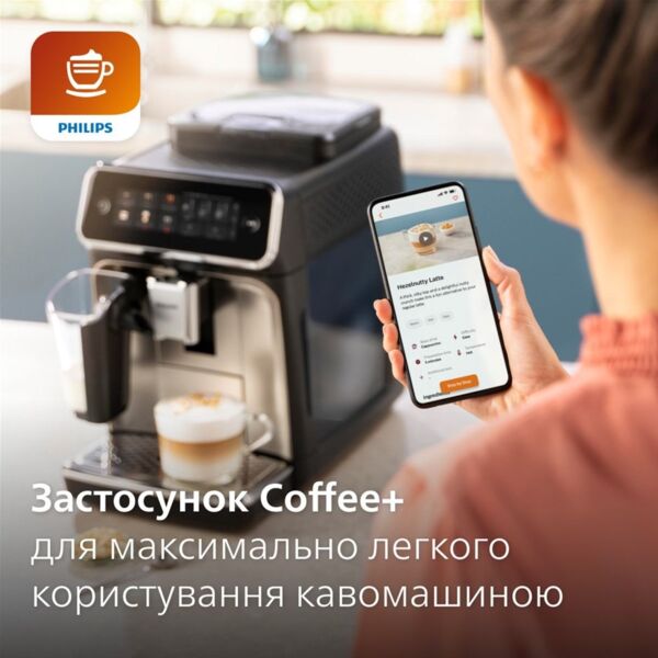 | Дополнительно | Кофемашины для зернового кофе, Кофемашины и кофеварки PHILIPS для молотого кофе, Кофемашини с капучинатором, Автоматические кофемашины, Сенсорные кофемашины, Кофемашины с контейнером для подачи молока |